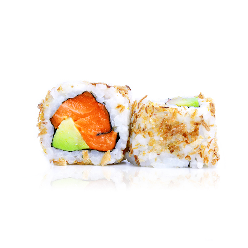 Breaded Shrimps, Avocado, Seared Salmon, Kanikama Sweet Chili Sauce