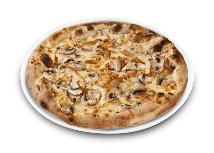 Tomato base, Mozza-Emmental,Chicken, Cream, Onions, Mushrooms, Olives, Oregano
