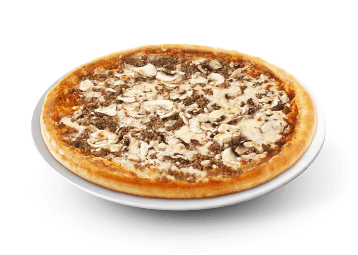 Tomato base, Mozza-Emmental, Mushrooms,…
