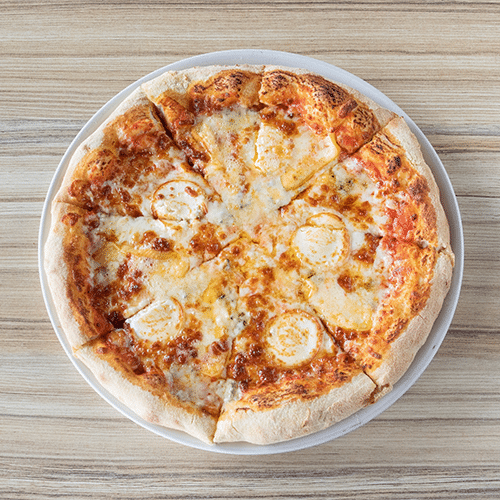 cream base, Mozza-Emmental, Goat Cheese, Bacon, Honey, Olives