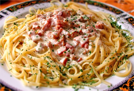Bacon Pancetta, Egg, Onion, Parmesan, Cream